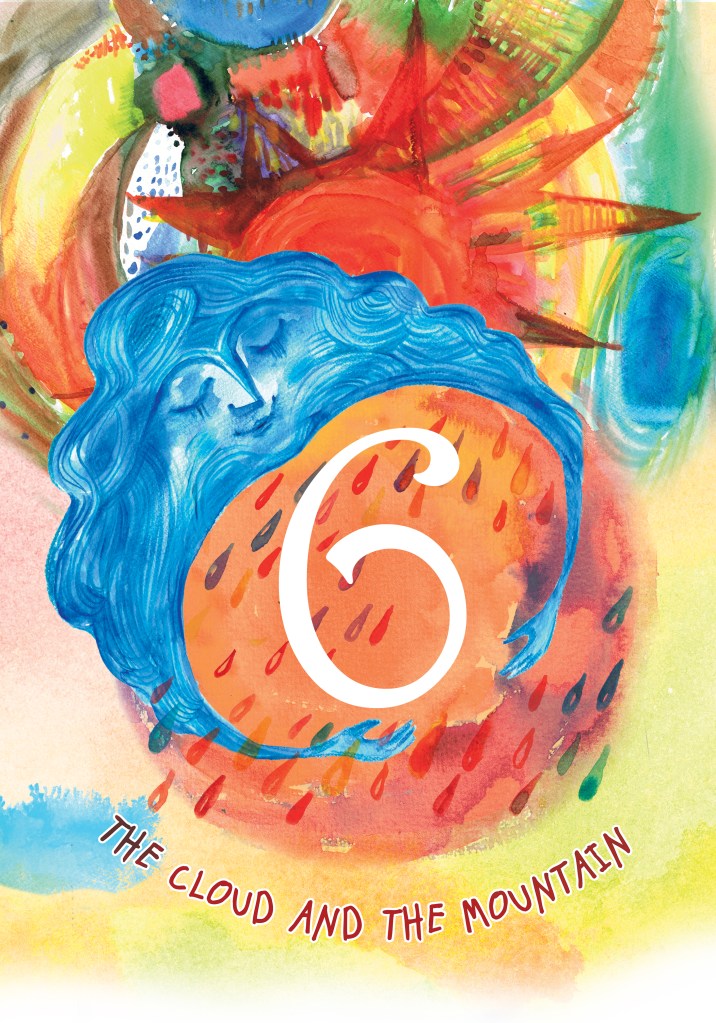 After the third day the Cloud dissolves. Mountain tells his story to the lakes, lakes to the rivers, rivers to the seas, seas to the ocean, thus reaching the Dessert where an Oasis is born.