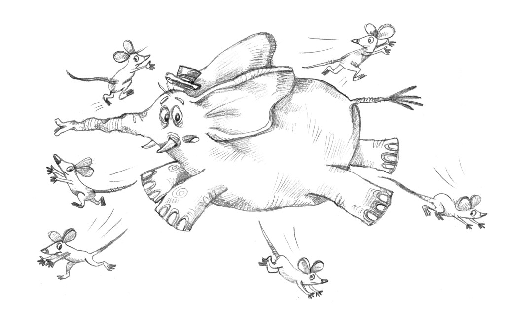 One day she reaches a big town. She gets to a big crowded marketplace where one could find everything, as well as MOUSE BURGERS. Ginji is stunned when she gets to a stall where mice are smashed by an elephant called Spiro, whose eyes are covered and listens to the orders of a hyena. Ginji’s heart is going to explode when she sees several mice tended on a rope. She wants to immediately escape, but then she notices that something strange is happening with the big basket where mice are stored. Another brave mouse (Methoslav the Golden Hairspring) had entered intentionally into it, trying to save the captives. She immediately decides to help him, opening a hole into the basket. Finally hundreds of mice are let in freedom and start to run for their lives. The elephant Spiro panics and starts to smash everything around, where Ginji and Metho run into the forest. There they tell each other’s stories and become officially friends.
